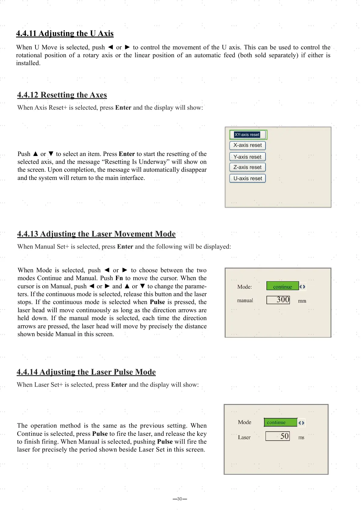 When U Move is selected, push ◄ or ► to control the movement of the U axis. This can be used to control the