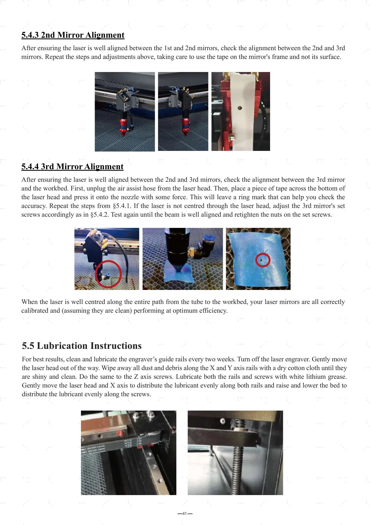 accuracy. Repeat the steps from §5.4.1. If the laser is not centred through the laser head, adjust the 3rd mirror's set