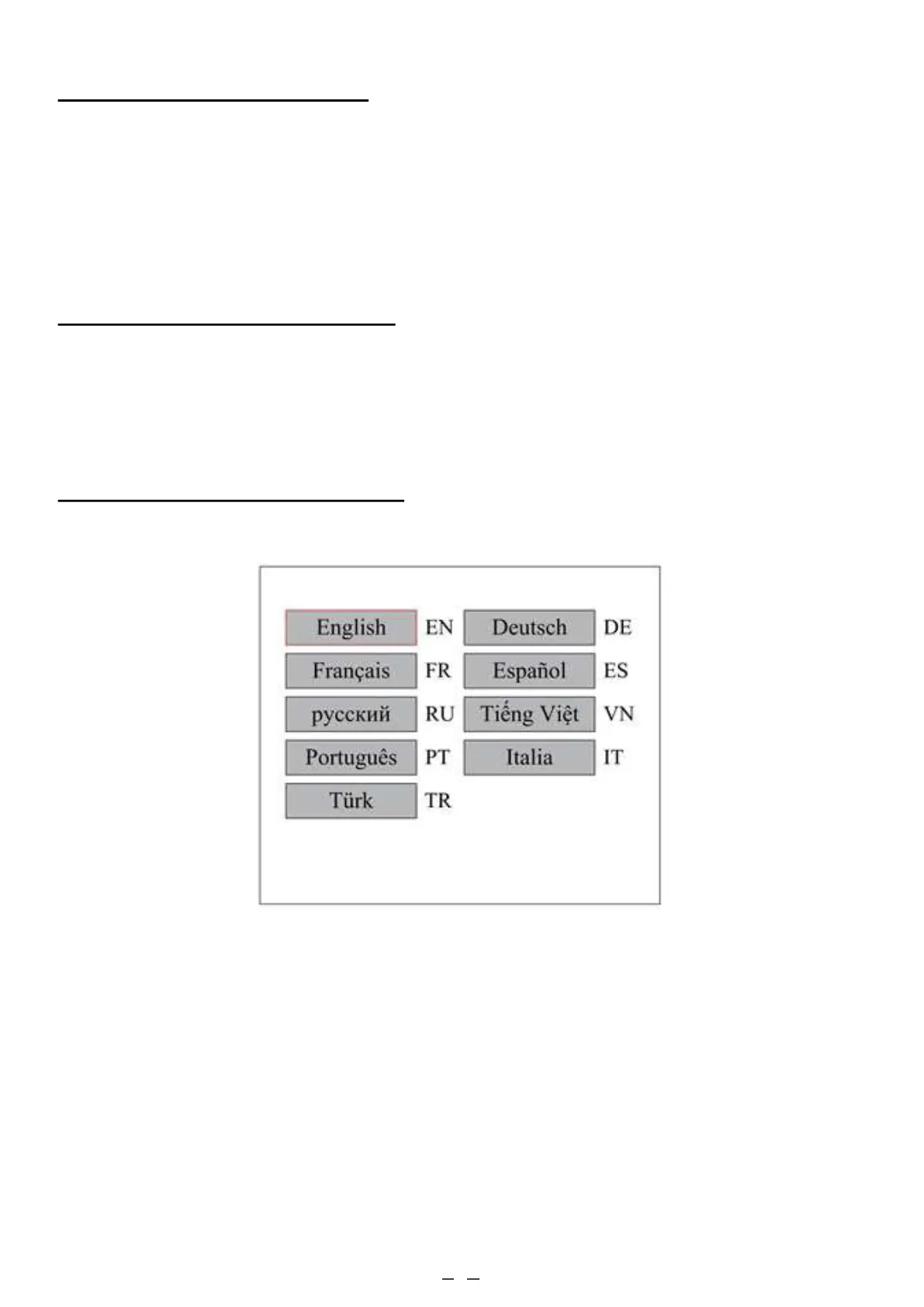 When Language is selected, press ENT and the display will show: