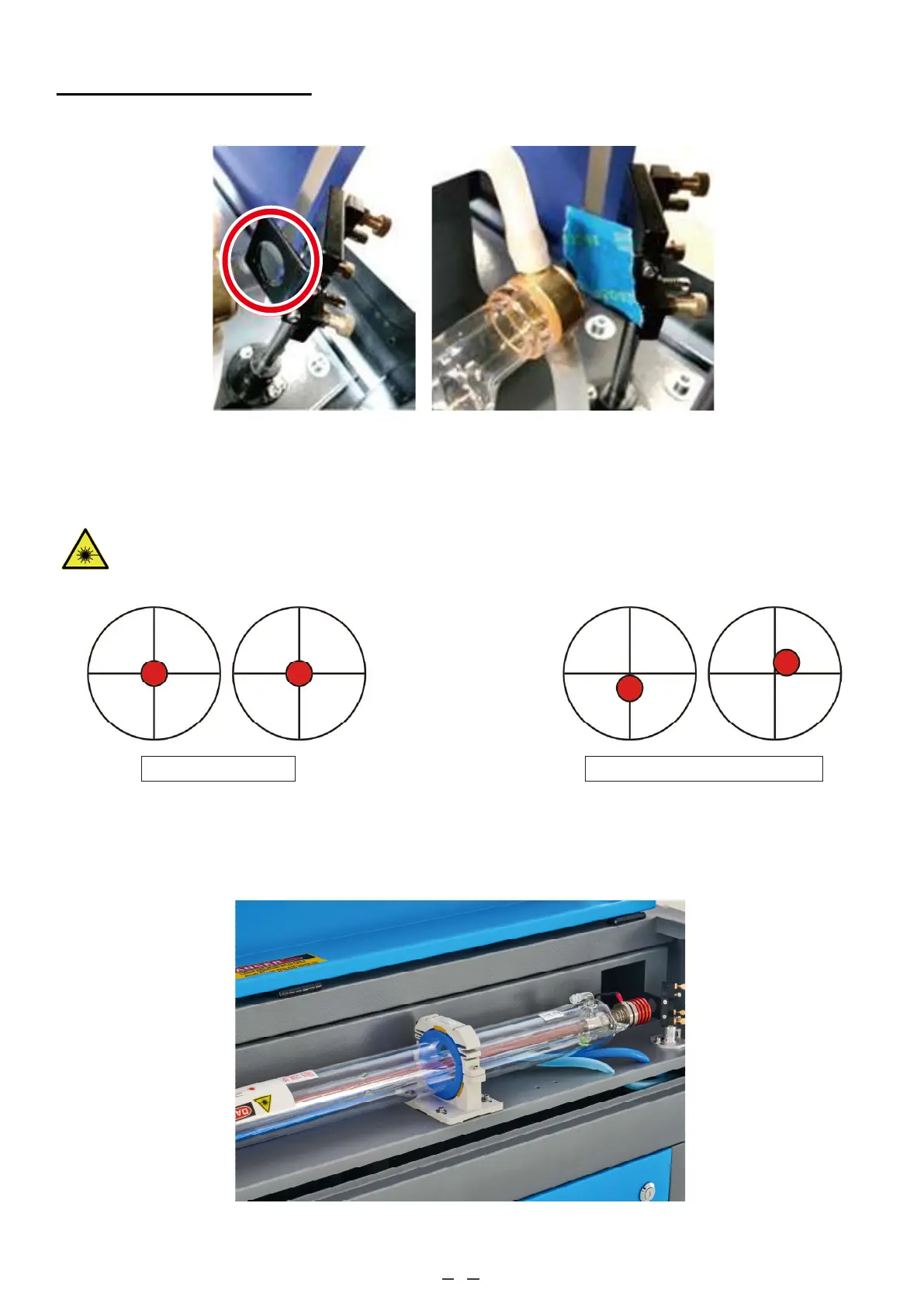 laser and carefully adjust the laser tube in its brackets. This may require loosening the bolts on its stand. Be careful not