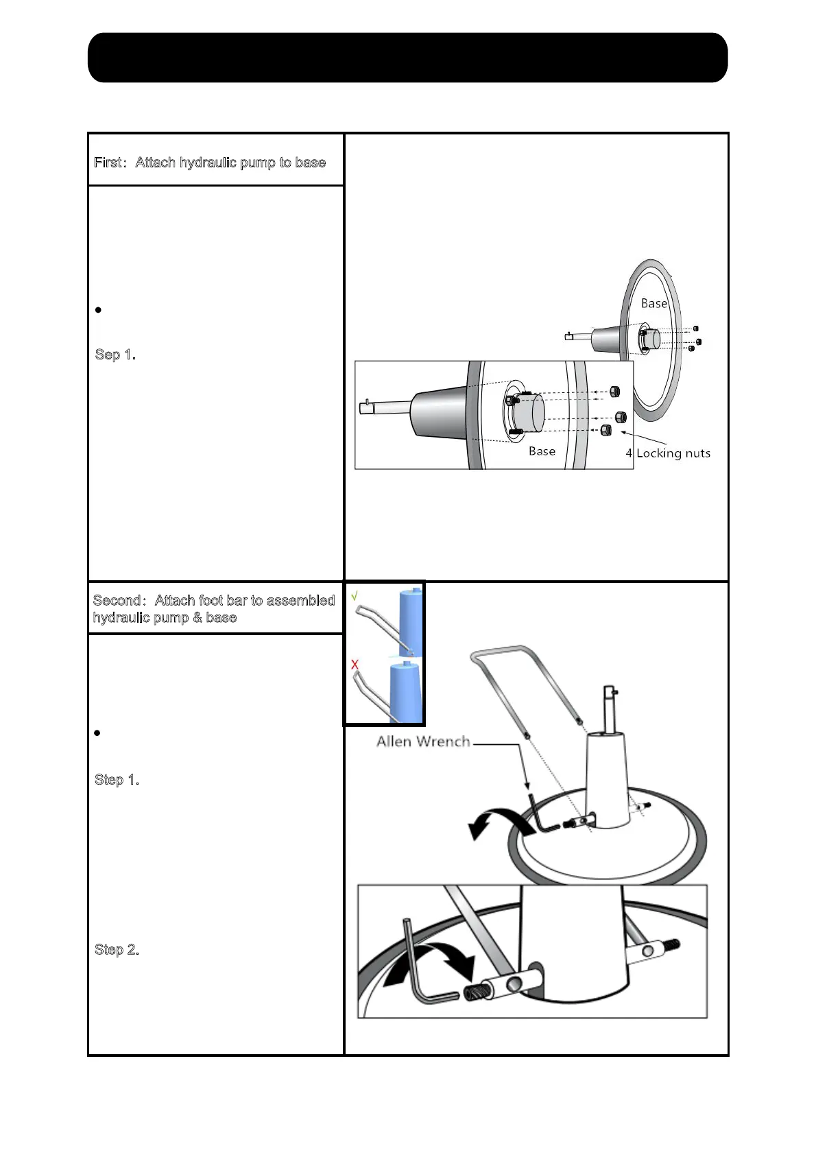 Step 1. Place assembled base & pump