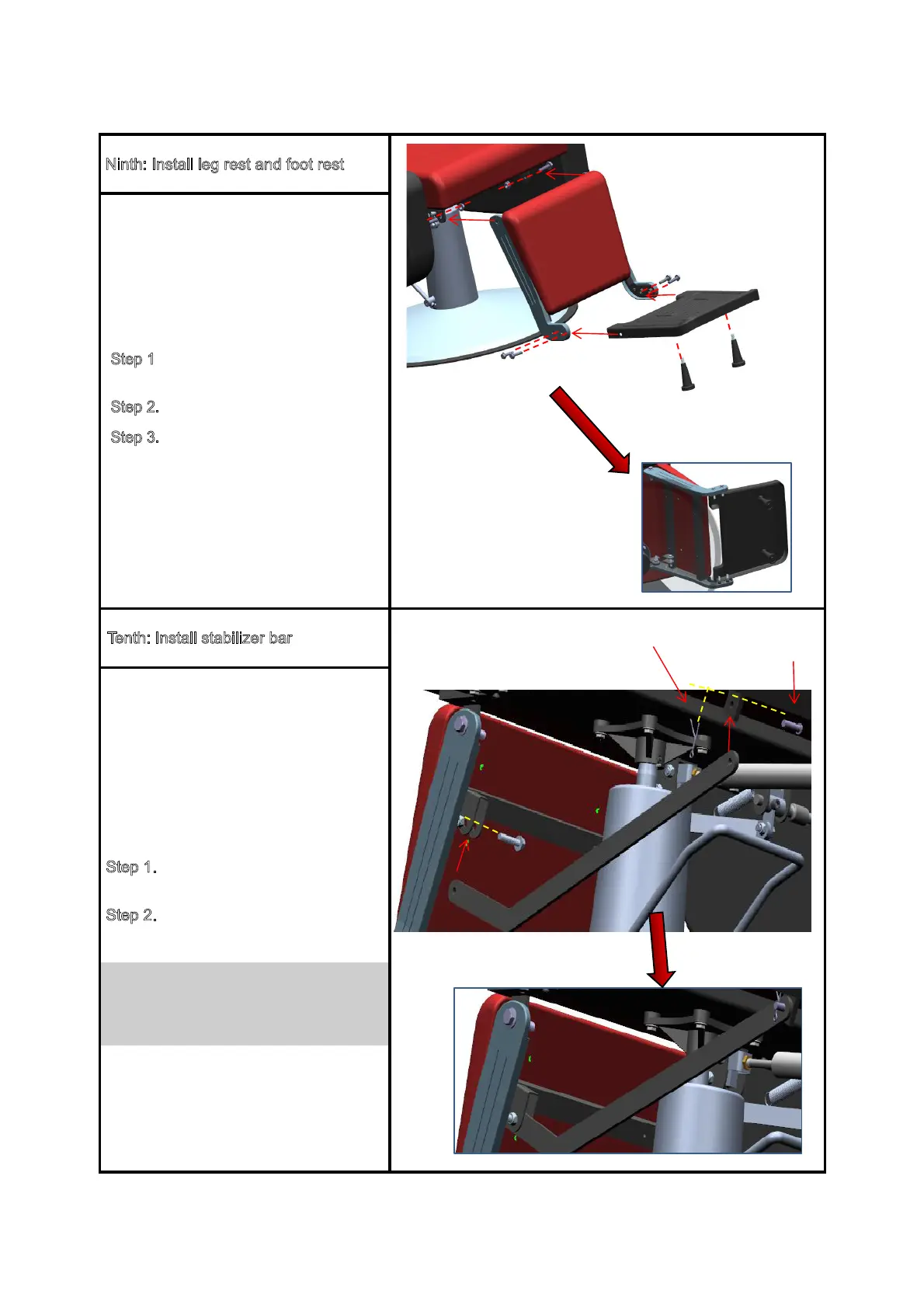 Ninth: Install leg rest and foot rest