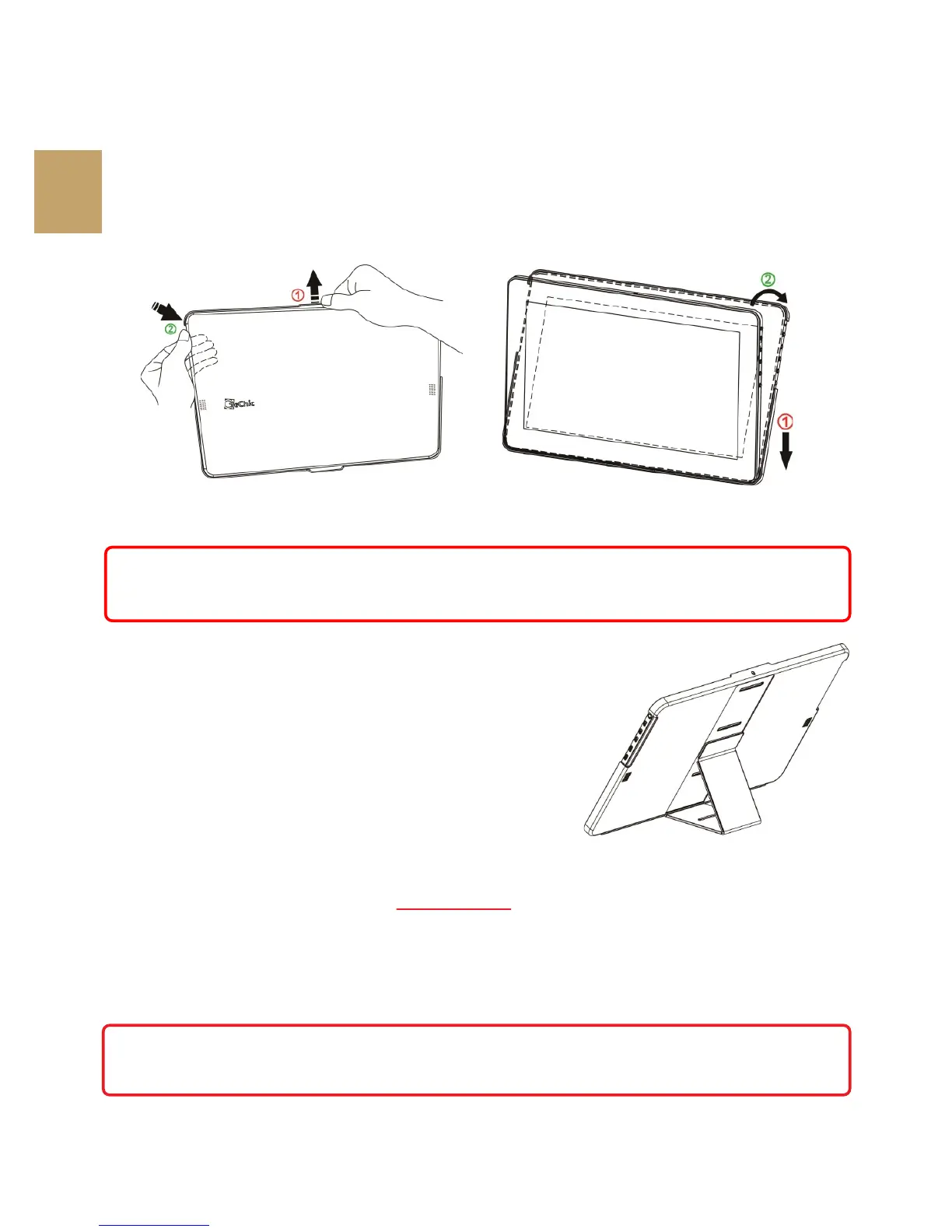 1-1 モニタを取り外す:まず手でカバースタンドを持って、また指で後方から