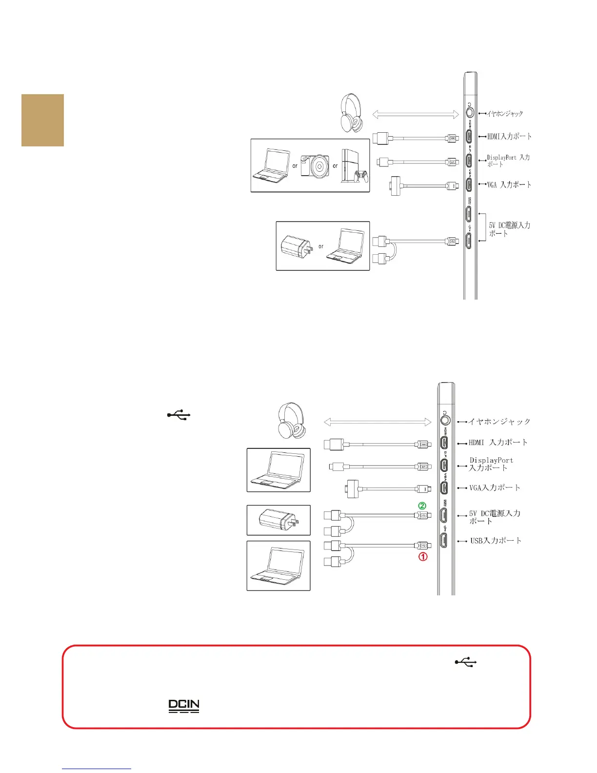 ません。"DC IN" ポートからは電源供給のみ行うことができます。