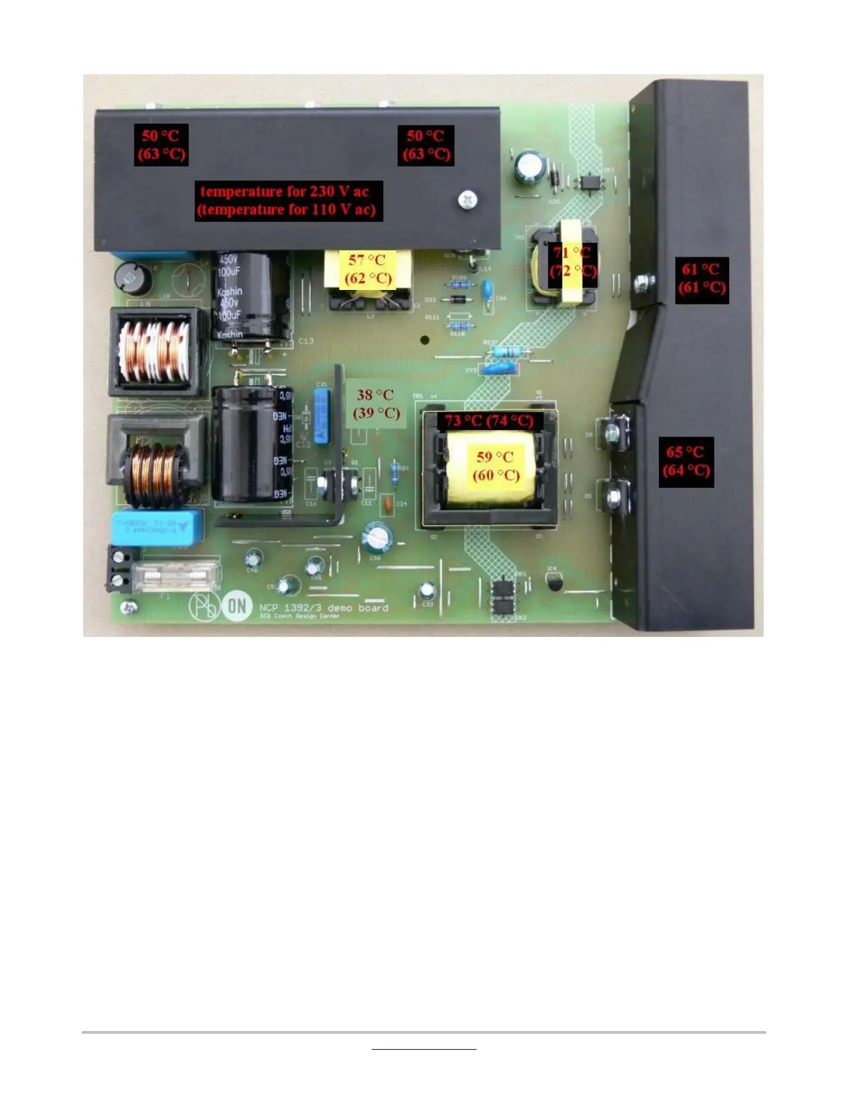 Figure 51. Photo of the Demoboard with Temperatures Measured for 230 Vac and
