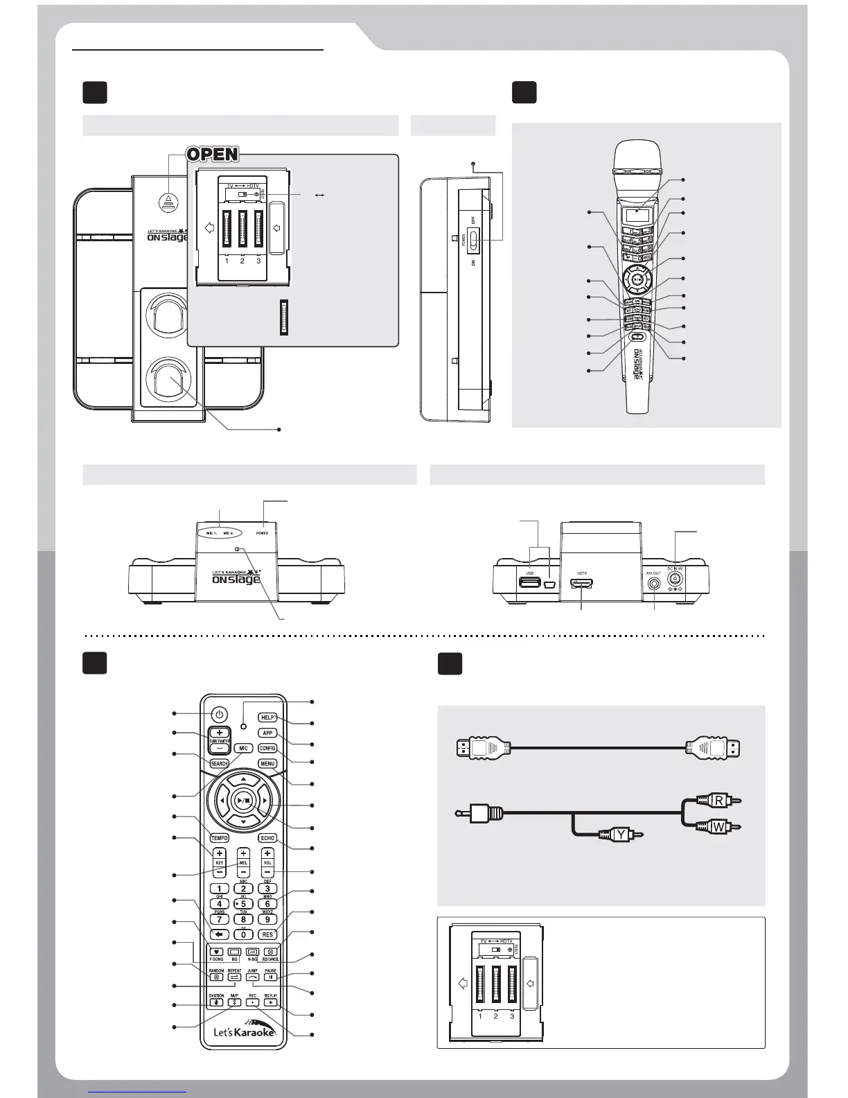 HD-TV Cable, Tri-color RCA cable, Power adaptor, Quick guide