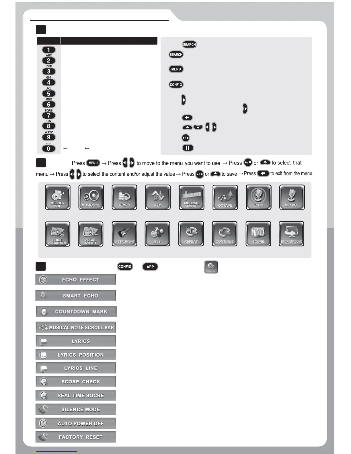 SONG SEARCH, MENU&CONFIGURATION