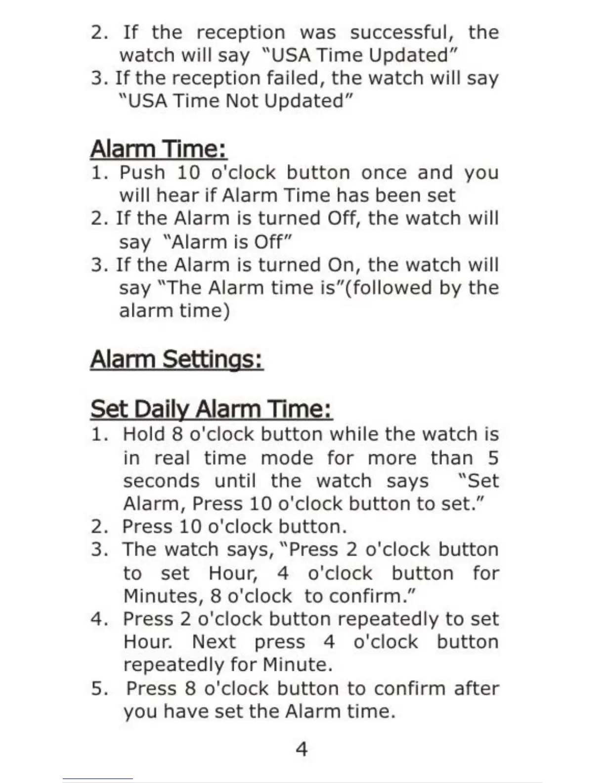 On Time 101006 Talking Atomic Watch - Alarm Functionality; Setting Daily Alarm Time