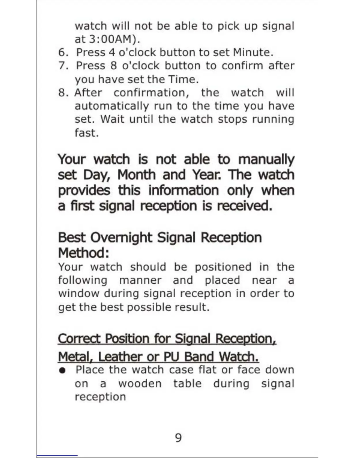 On Time 101006 Talking Atomic Watch - Optimizing Overnight Reception; Correct Positioning for Reception