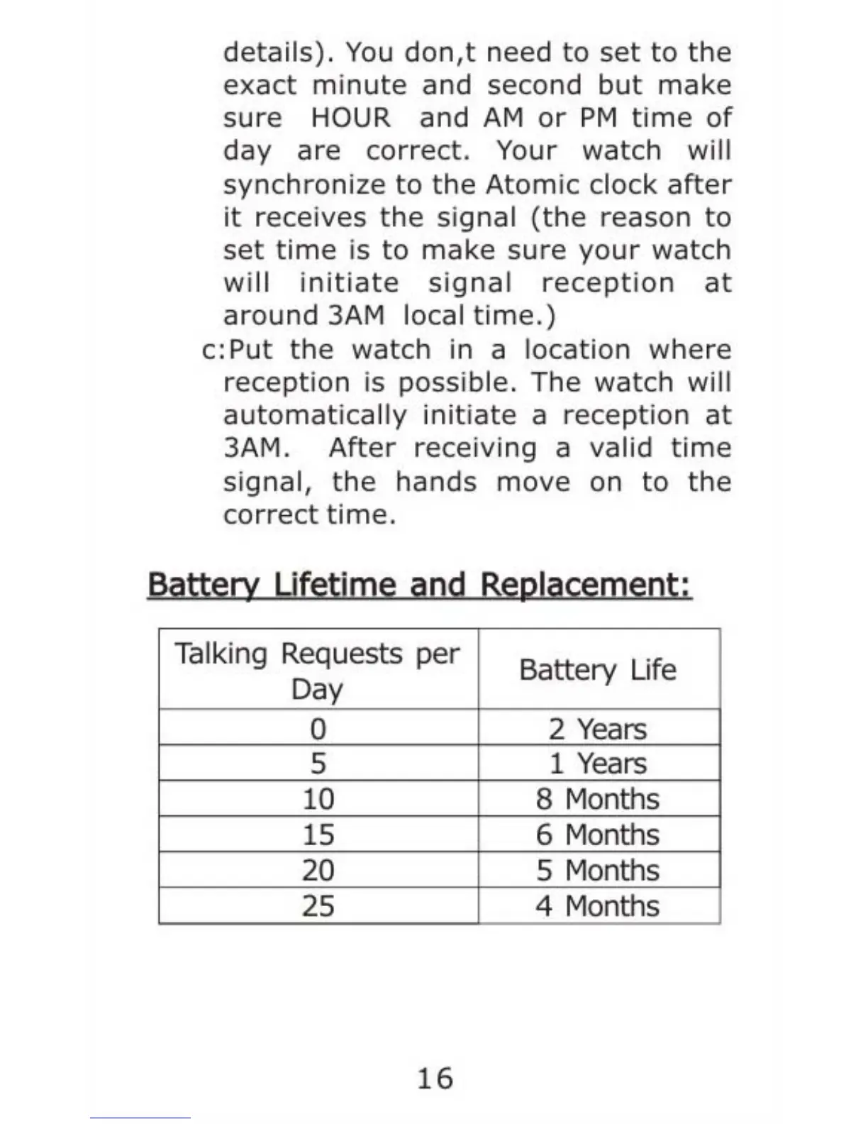 On Time 101006 Talking Atomic Watch - Battery Life Expectations