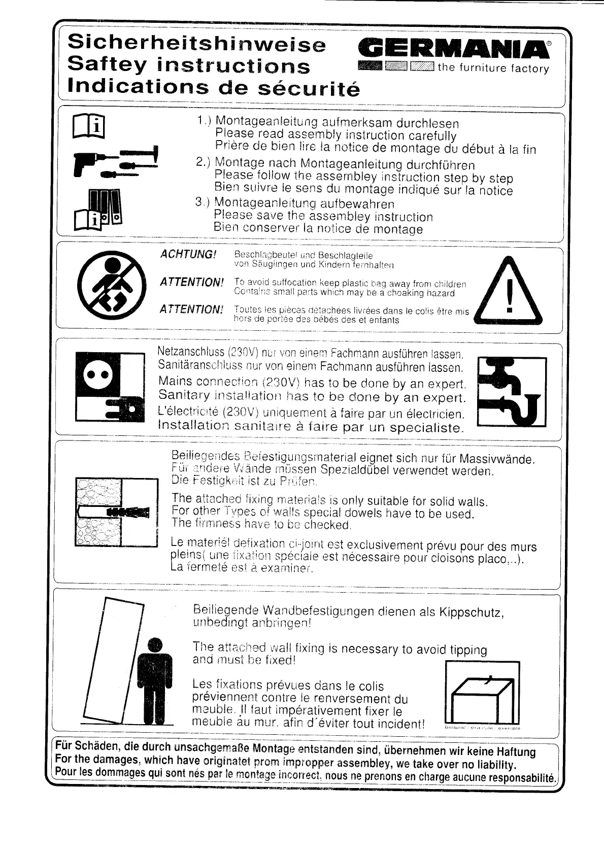 on24 0397 - Safety and Warning Instructions; General Assembly Safety Guidelines; Hazard Alerts and Electrical Safety; Wall Anchoring and Stability