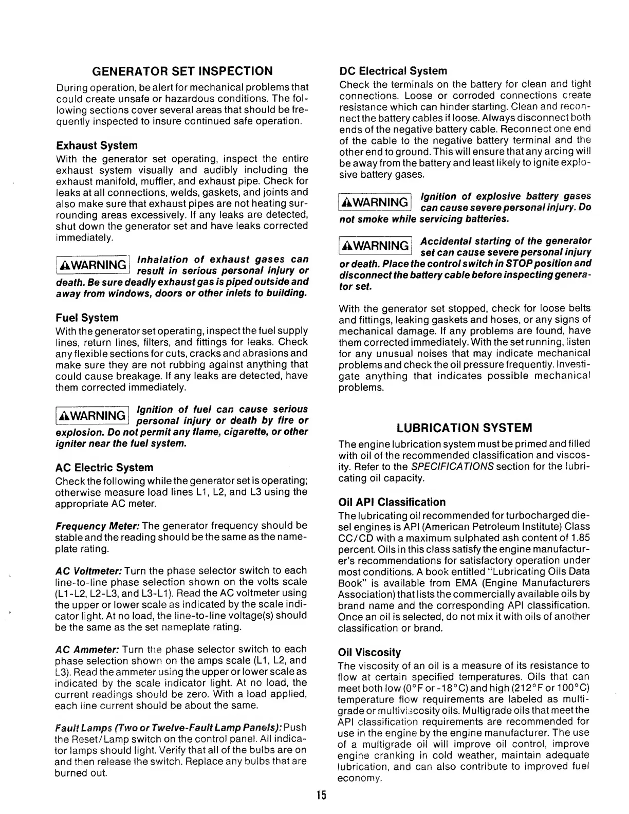 Onan 200 DFP - Generator Set Inspection; Lubrication System