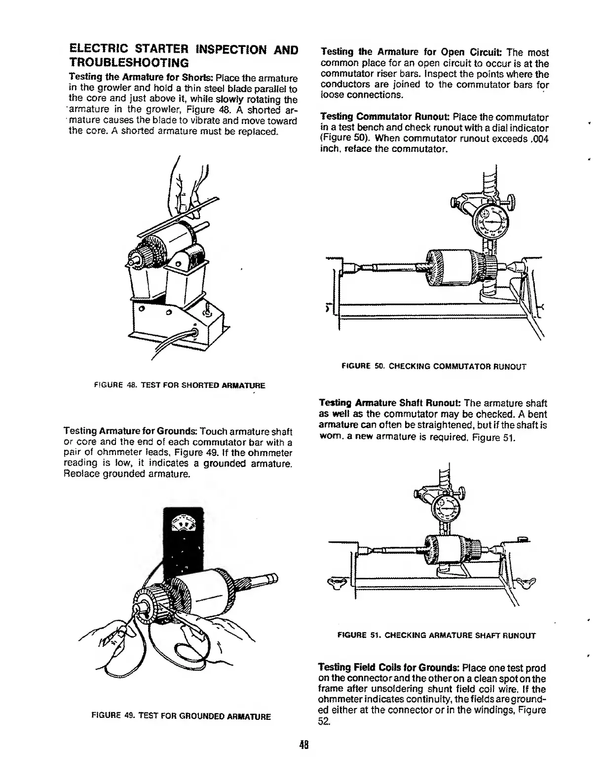Onan CCKA - Electric Starter Inspection and Troubleshooting; Testing Armature for Shorts; Testing Armature for Grounds