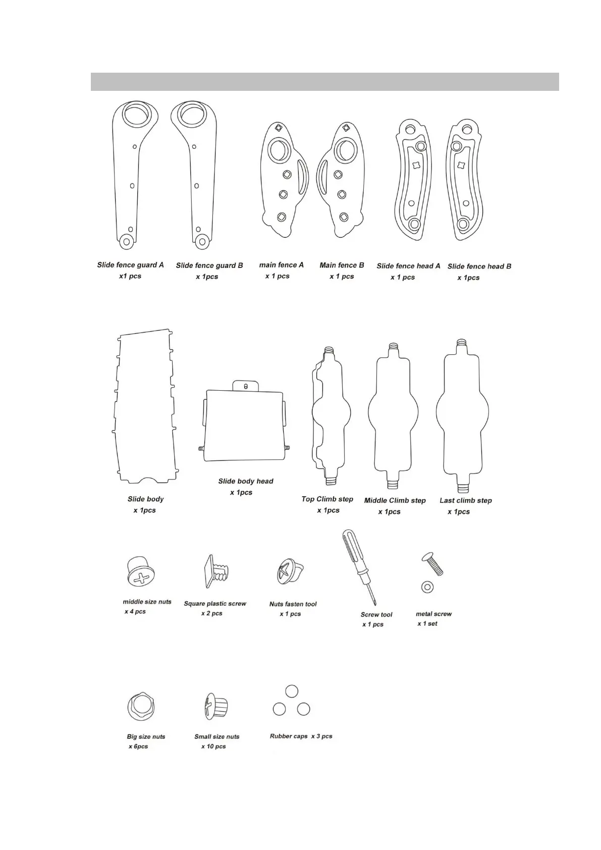 onasti Space Slide - Components Lists