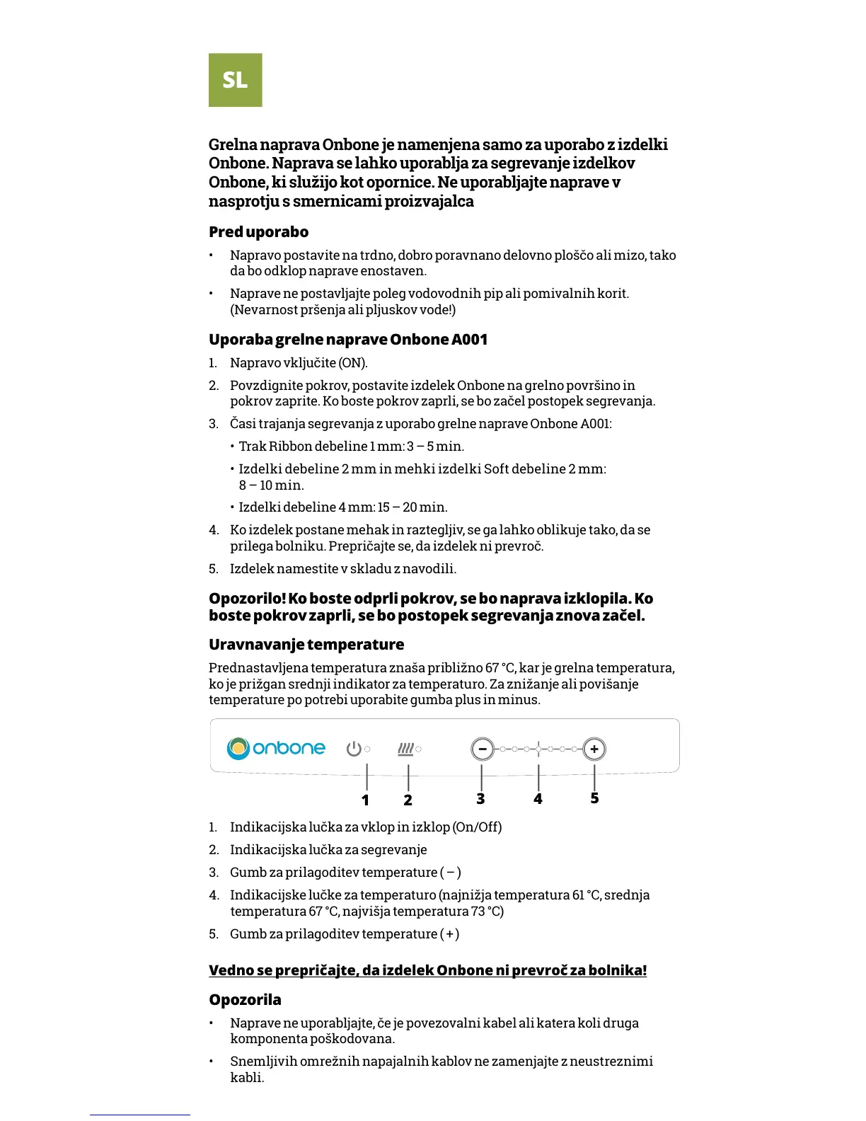 Grelna naprava Onbone je namenjena samo za uporabo z izdelki