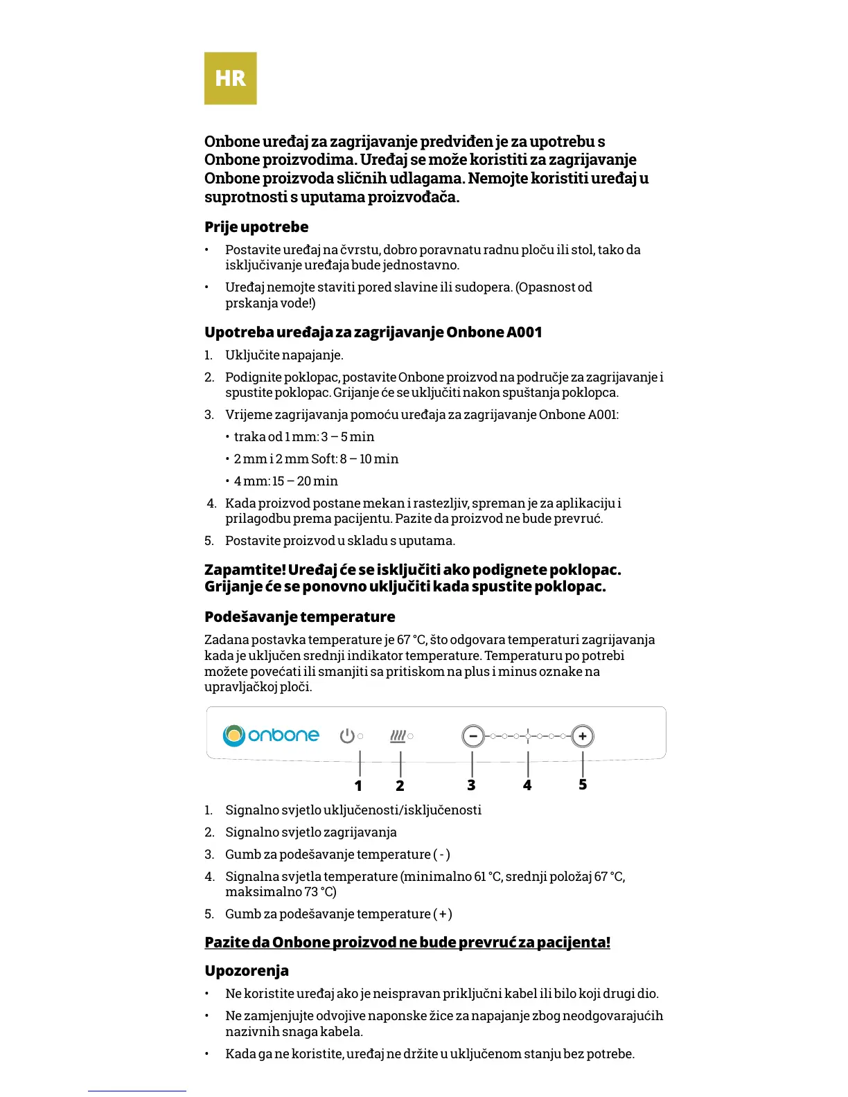 Upotreba uređaja za zagrijavanje Onbone A001