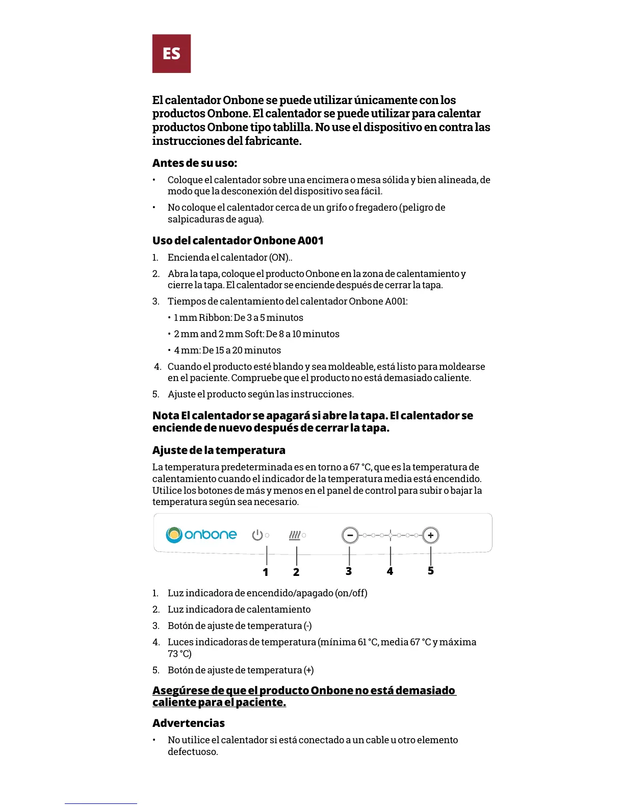 Uso del calentador Onbone A001