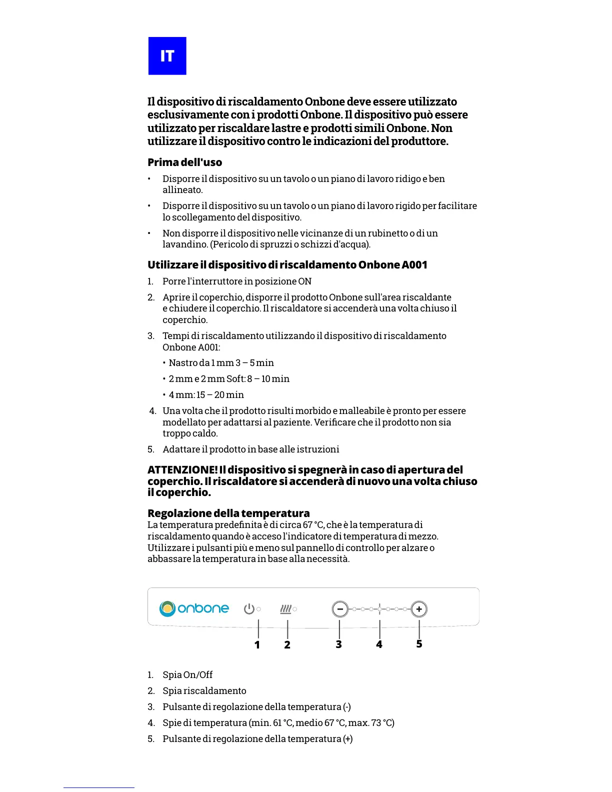 Il dispositivo di riscaldamento Onbone deve essere utilizzato