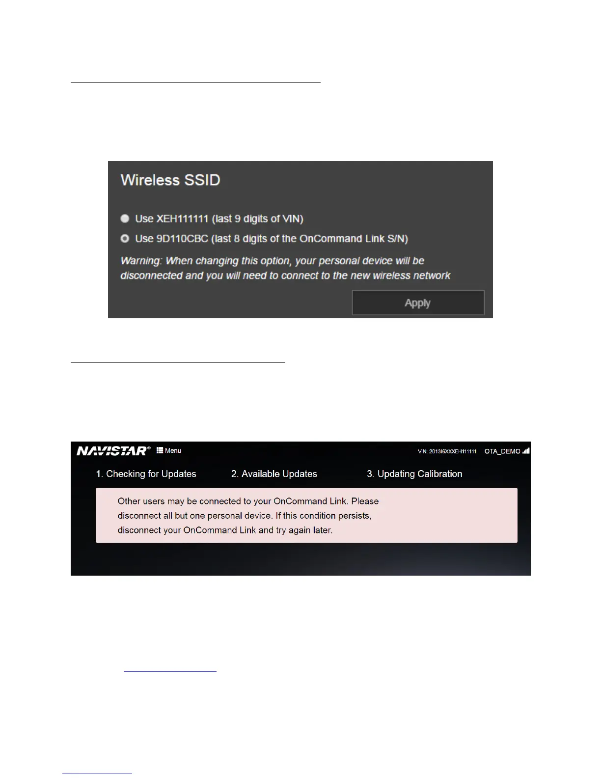 If you want to change the OnCommand® Link device’s SSID to match the last 9 digits of the VIN it is