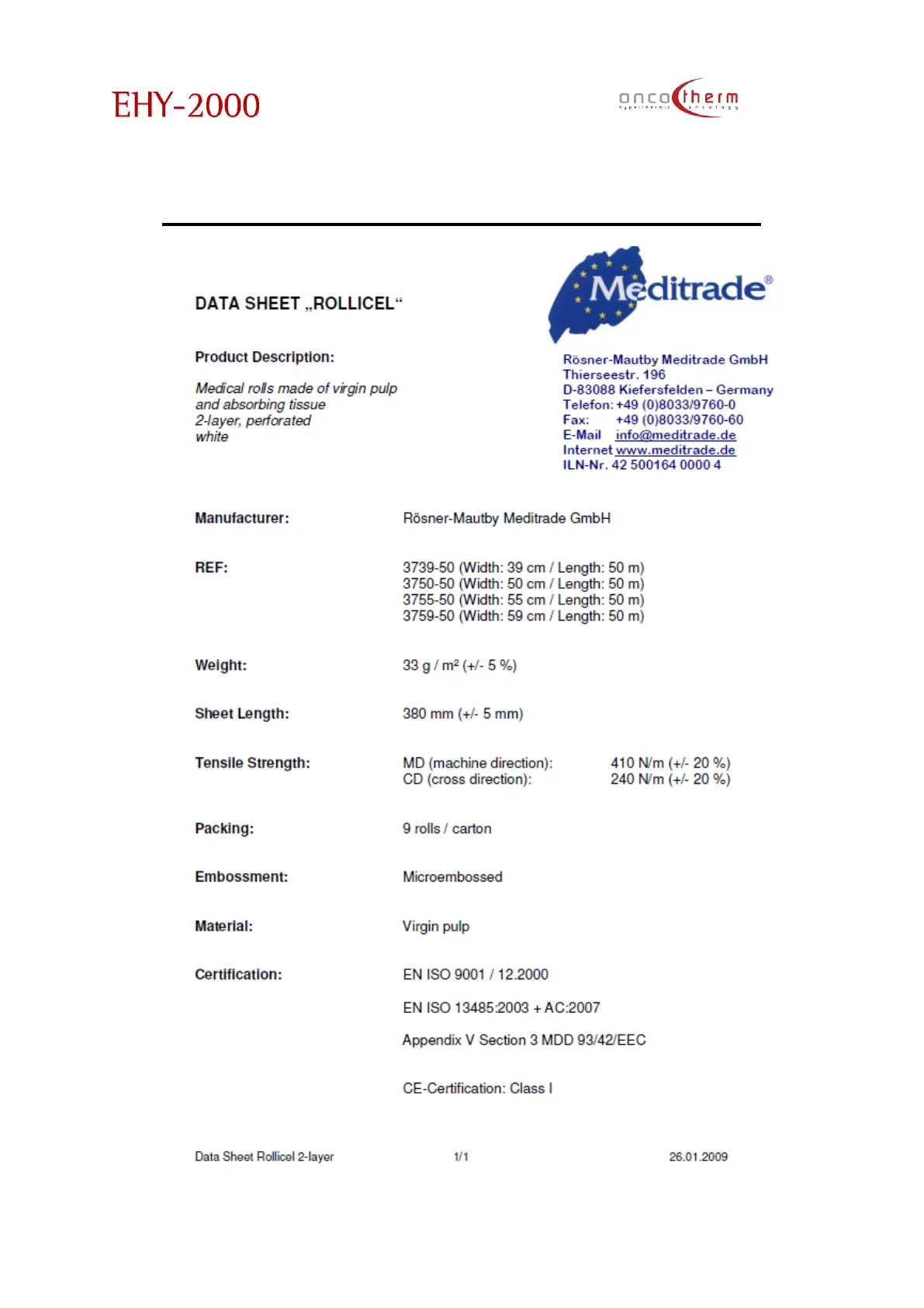 OncoTherm EHY-2000plus - Appendix 9 - Rollicel Datasheet