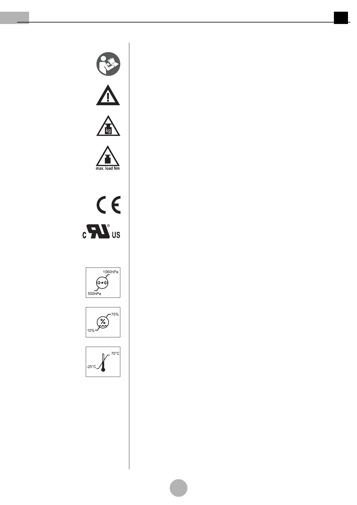 Relative humidity: indicates the permissible humidity values in a range from 10% to 75%