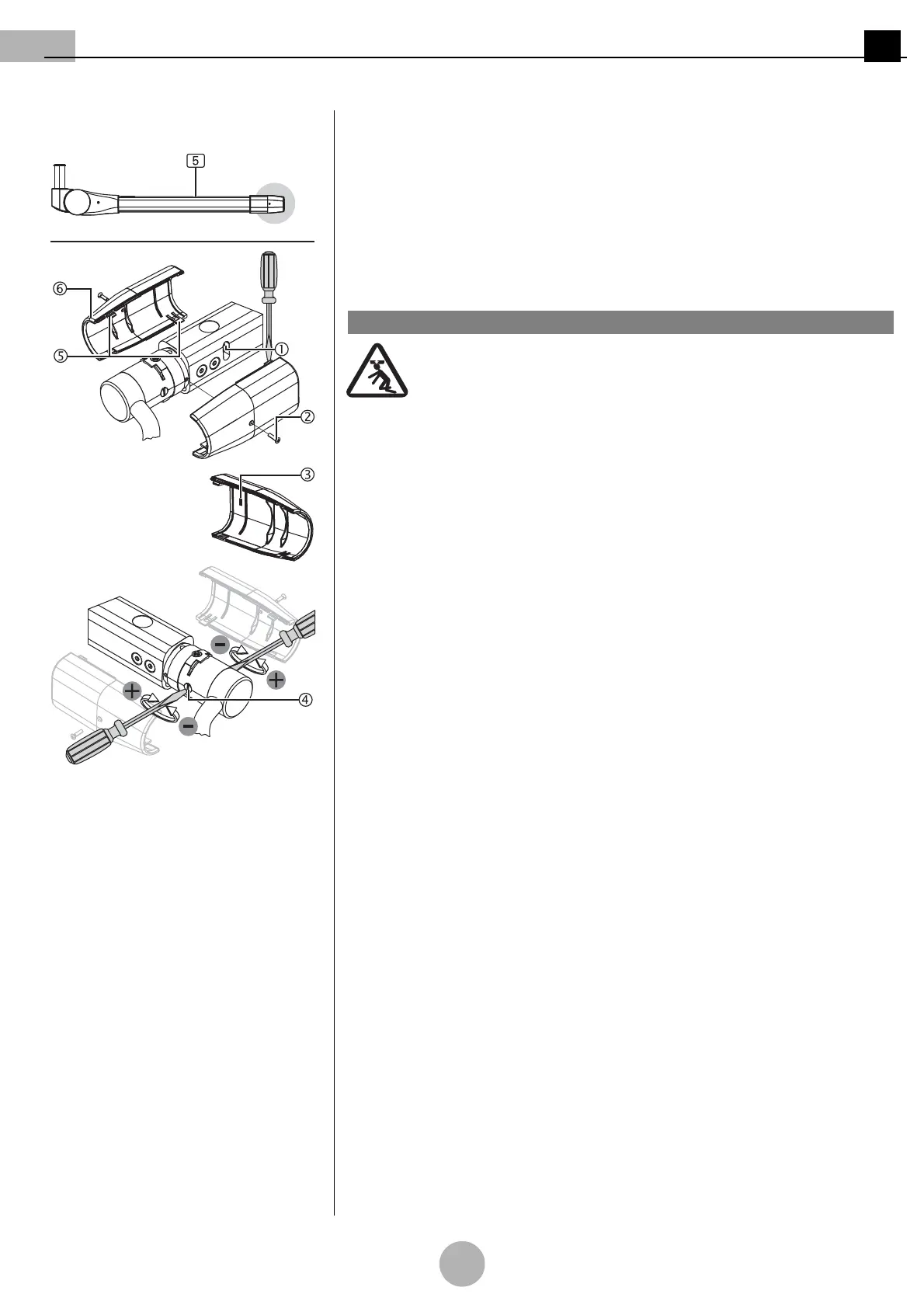 2. Gently disengage each cover panel 6 on the 2 staggered straps 5 using a suitable