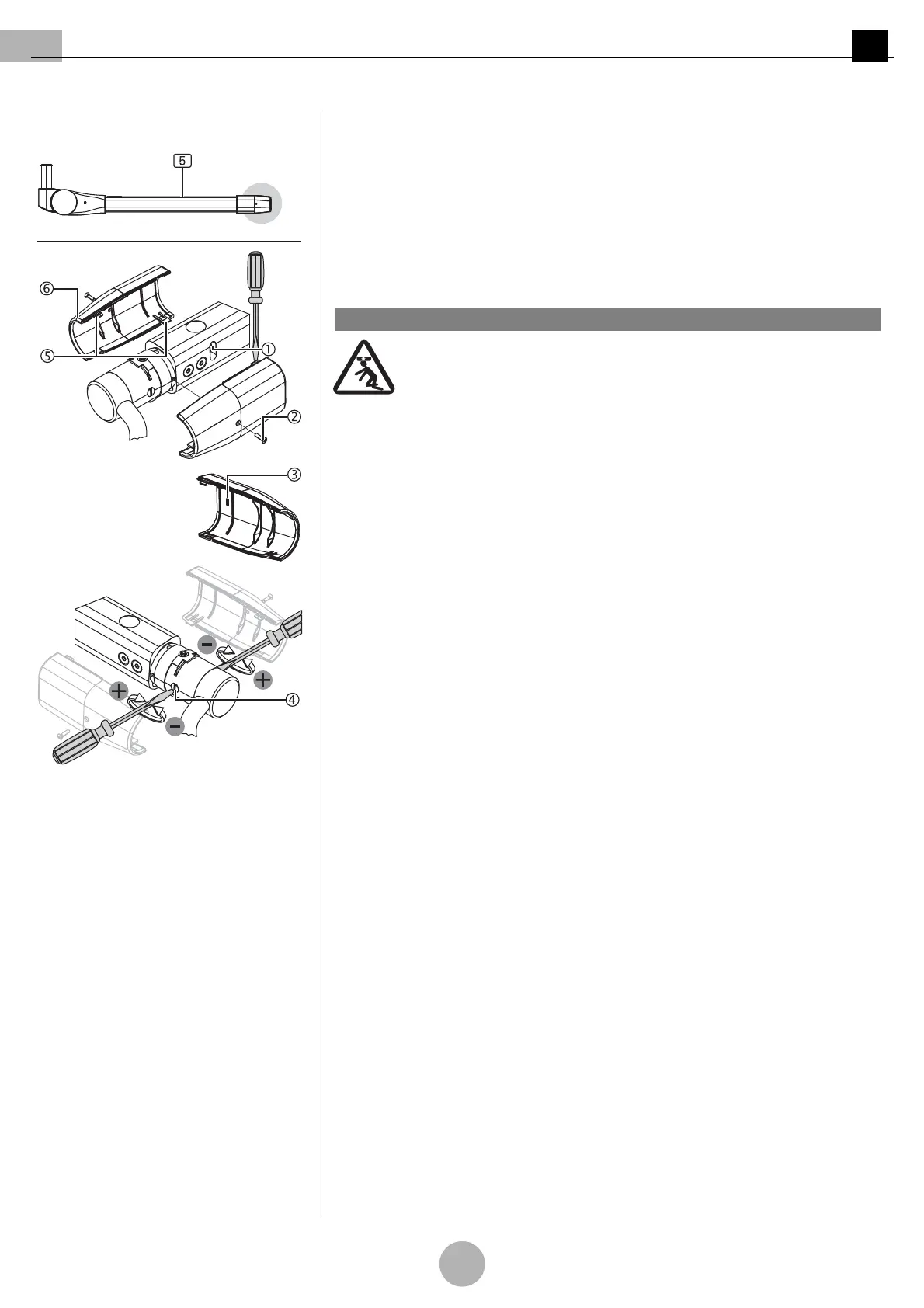 2. Jede Verkleidung 6 an den 2 versetzten Laschen 5 vorsichtig mit einem passenden