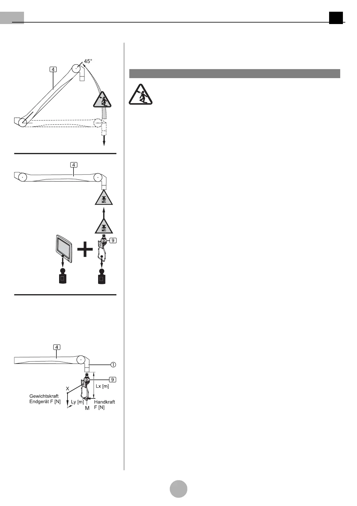 • Max. loading capacity of the spring arm 4 with spring equipment mounted