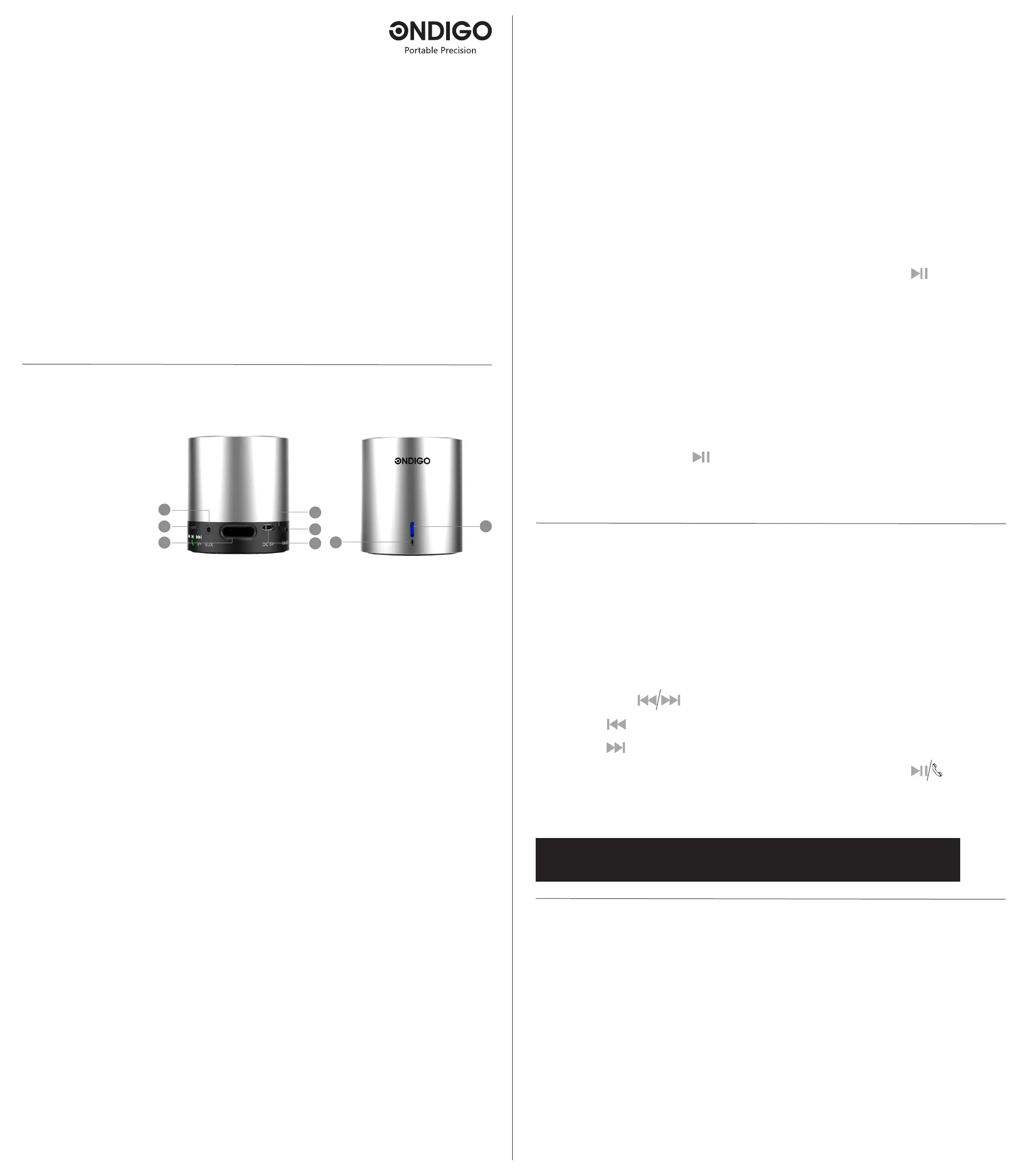 Ondigo Beat Wireless Speaker Quick Guide
