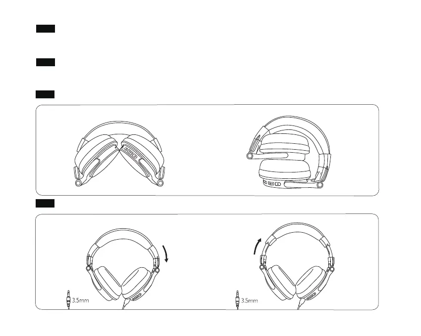 Press and hold the On/Off button① to turn the headphones on. The LED light will flash between