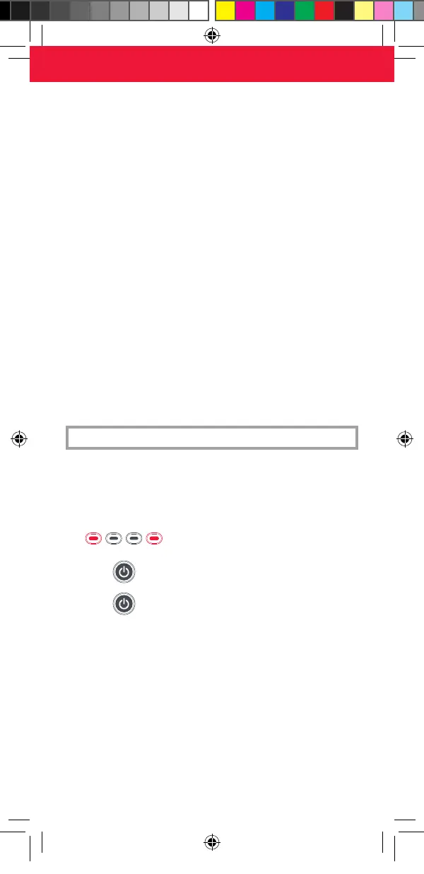 2. Hold Rød + Blå nede, indtil LED’en bag Tænd/