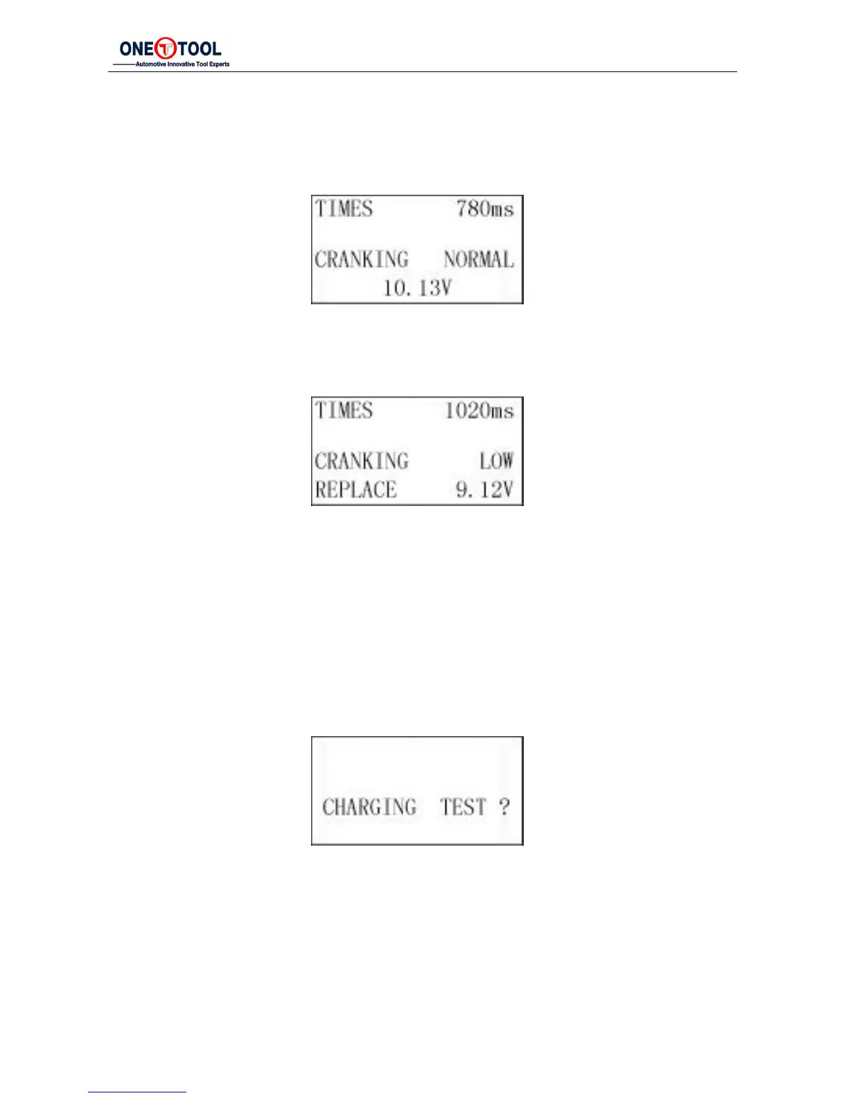 Test result of the tester includes actual cranking voltage and actual