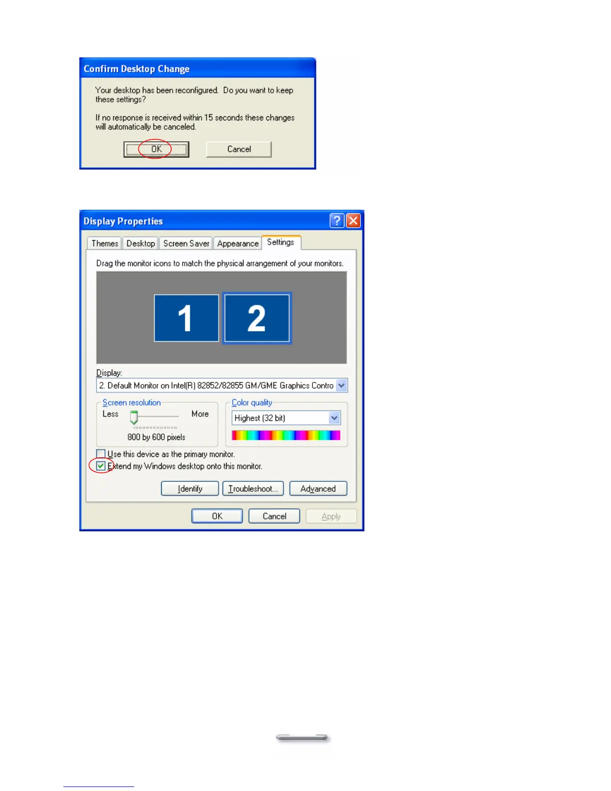8. Select the second LCD panel. This is done either by clicking on the number 2 or selecting from