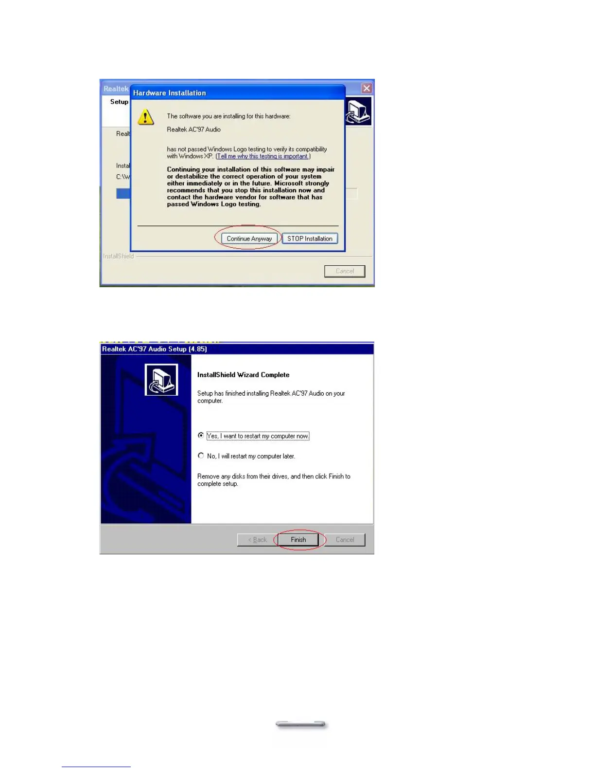 Note: For XP If you receive this warning message, please click Continue Anyway.