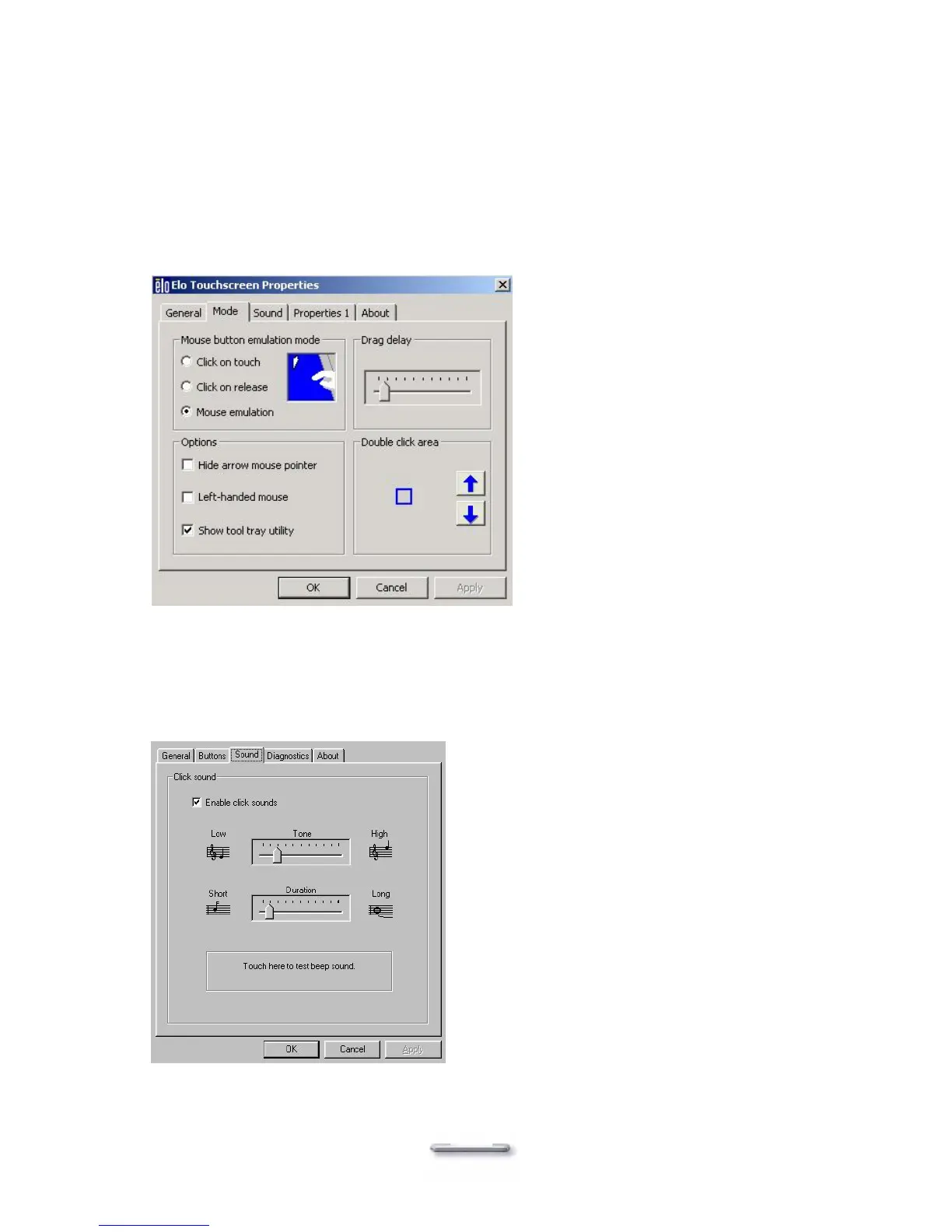 ¾ To change sound properties for ELO touch tools.