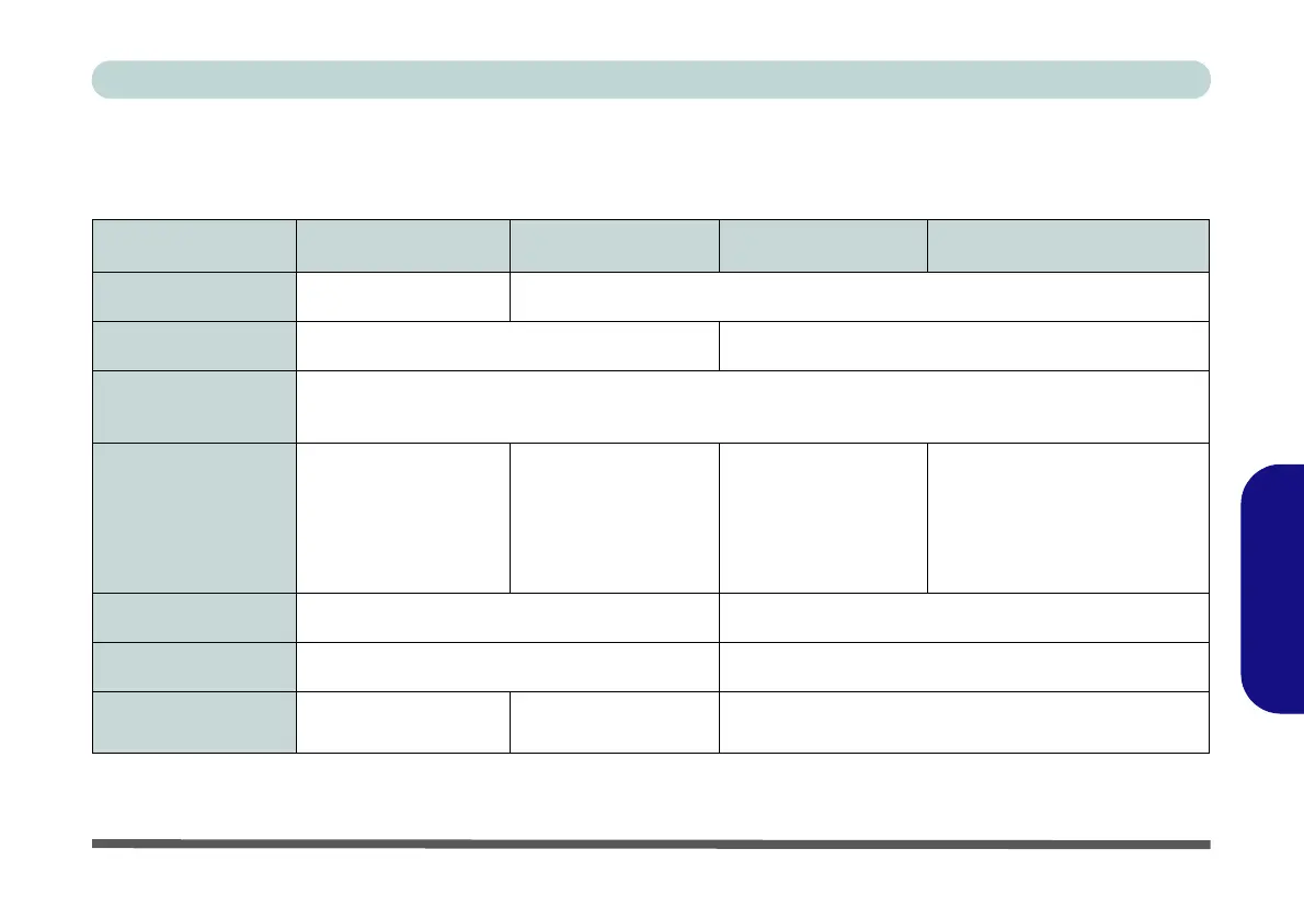 Esta serie de portátil incluye cuatro tipos de modelos distintos que se diferencian según se indica en la siguiente tabla.