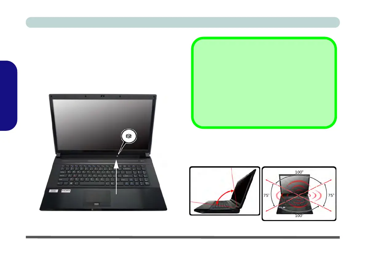 Der horizontale Sichtwinkel des Senders beträgt 100°. Der