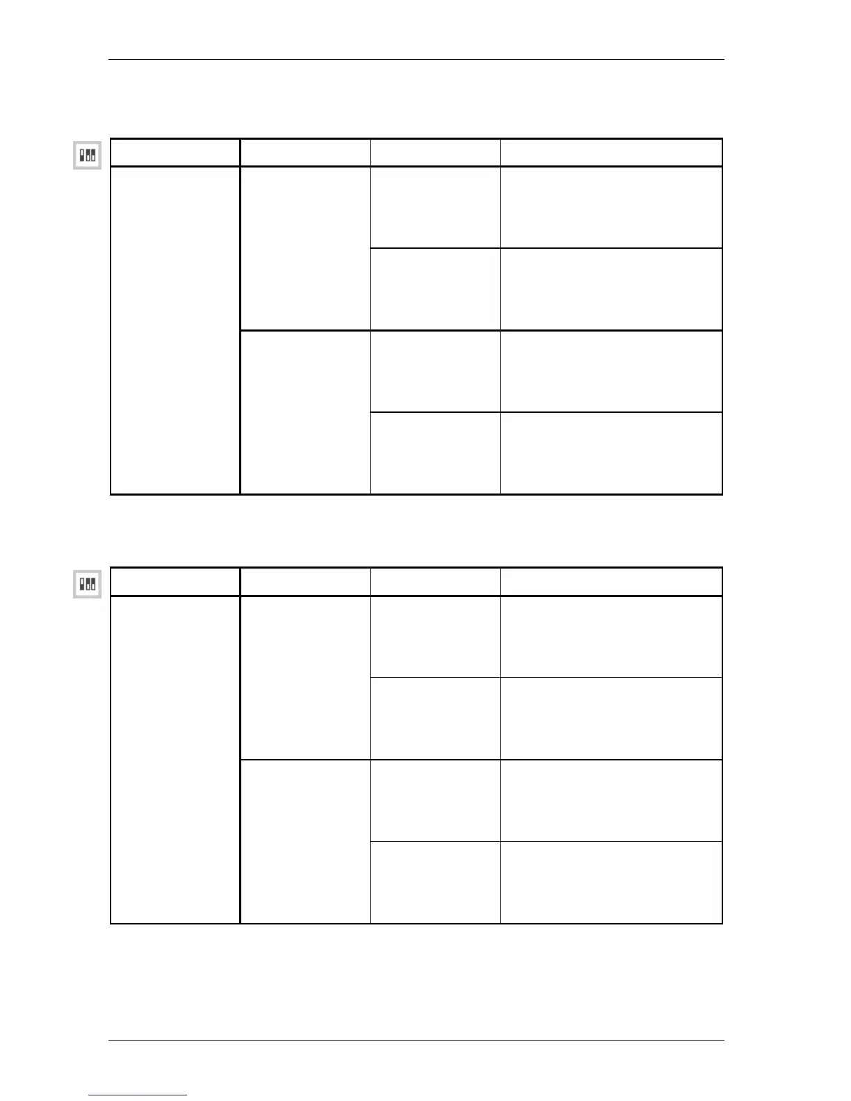The following table gives an overview of the DIP switches on DIP switch bank DS4: