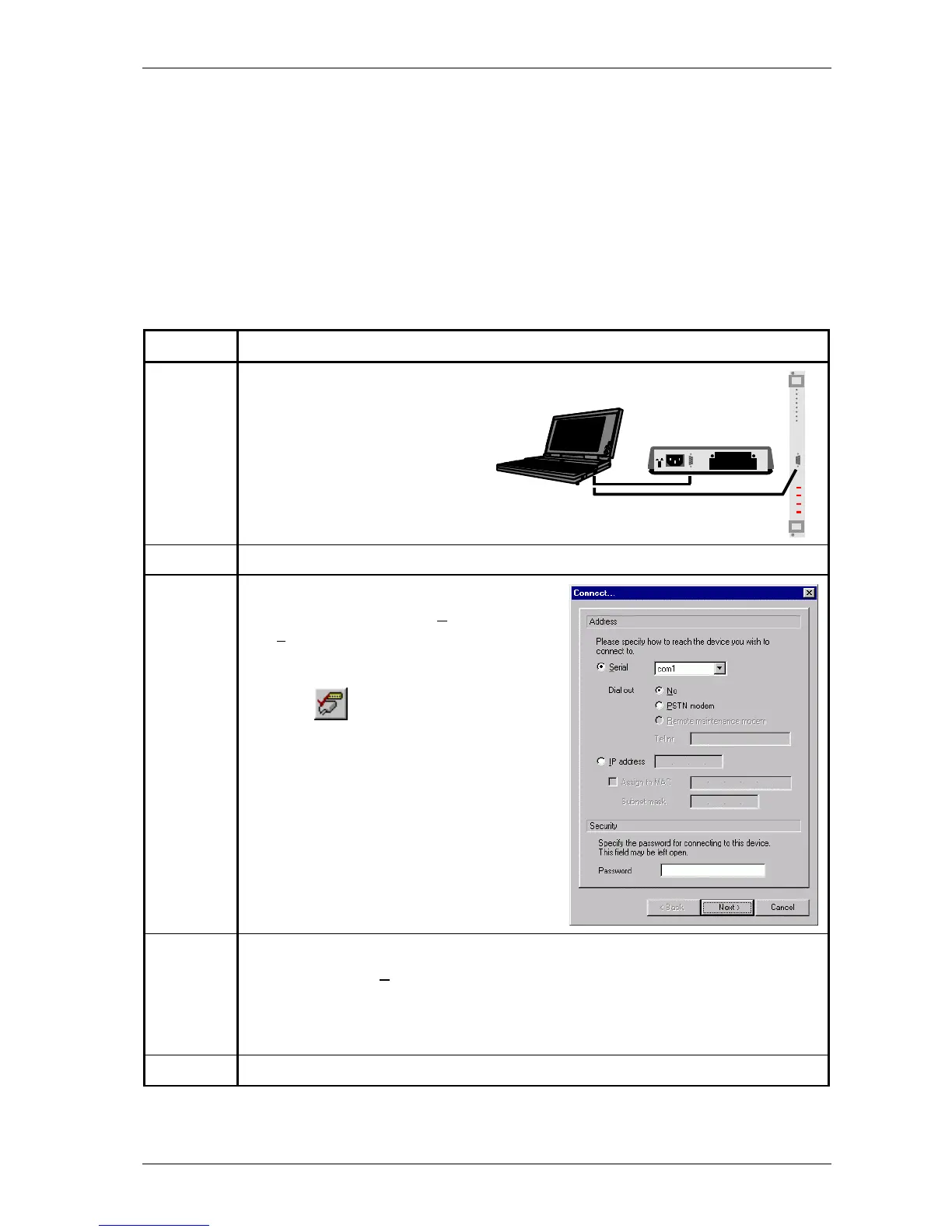 4 In the Connect (to a device) window, configure the following parameters: