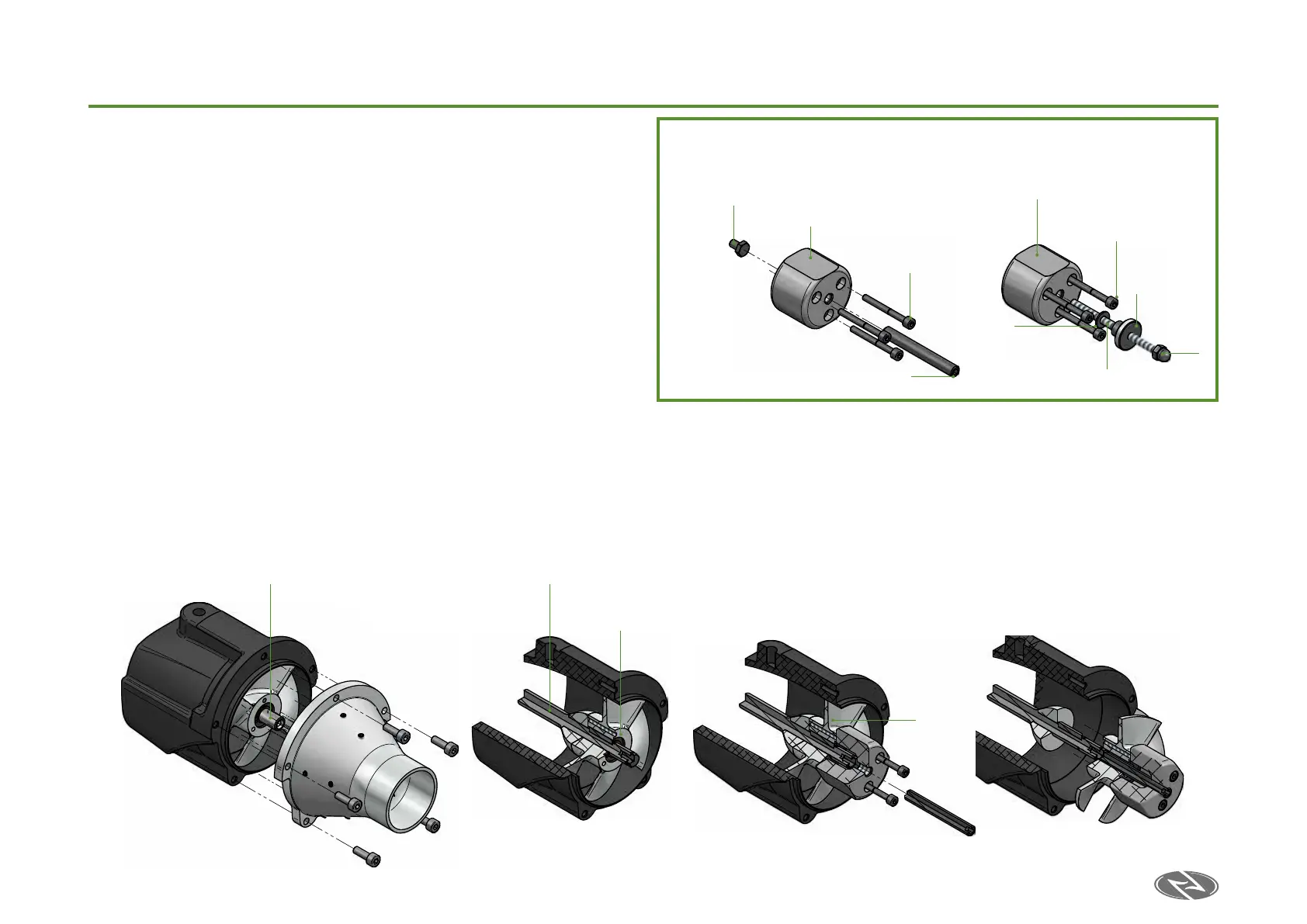 Push the Stator-Nozzle assembly into the Pumps shaft (B) and screw the five