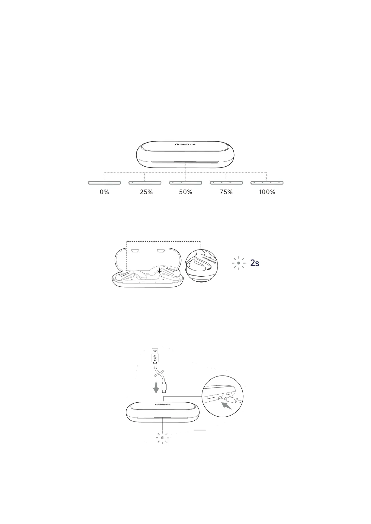 Vložte sluchátka do nabíjecího pouzdra. Indikátor LED sluchátek zůstane svítit po dobu