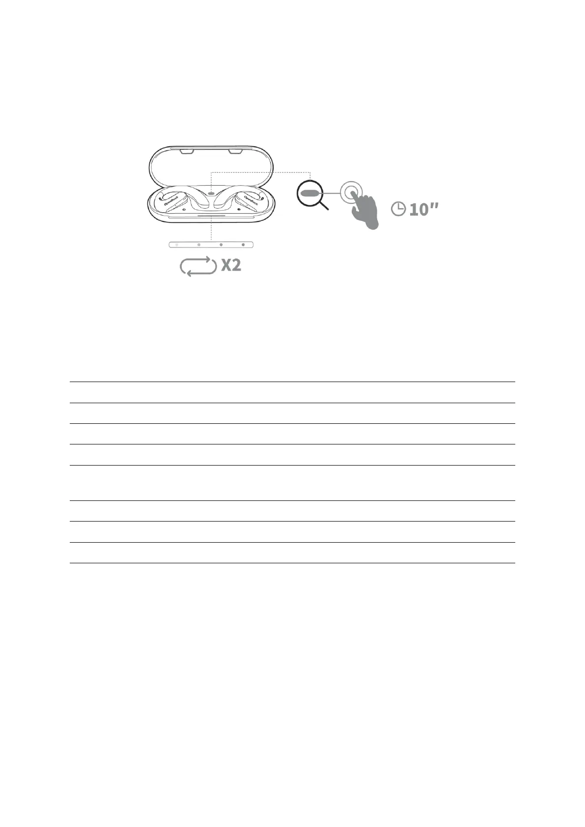 Helyezze a fejhallgatót a töltőtokba, és hagyja nyitva. Nyomja meg és tartsa lenyomva 10