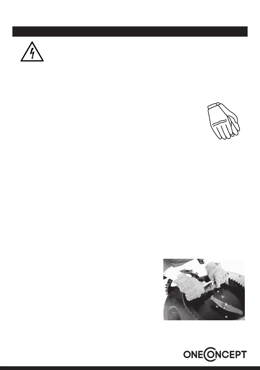• Überprüfen Sie den unteren Bereich des Gerätes (Rotormesser und Räder) und ent-