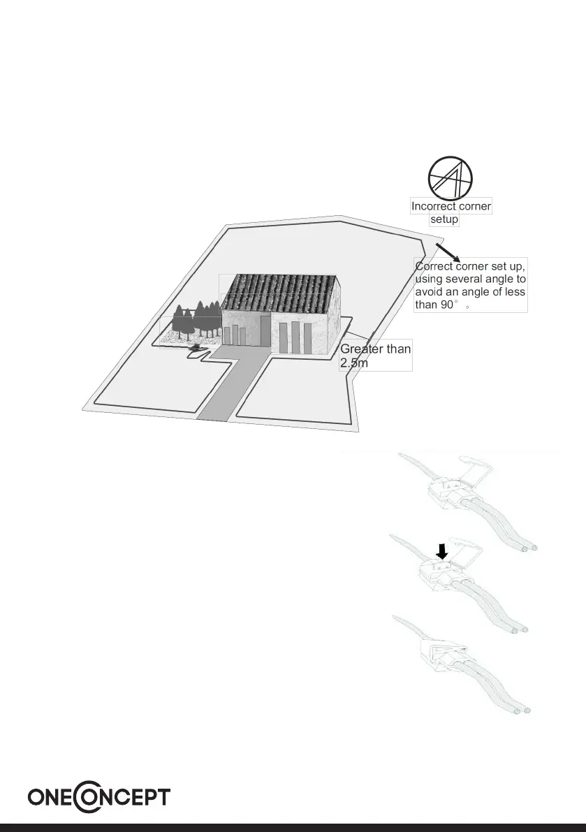 up virtual wire. A corner sharper less than 90 degrees can cause the mower to lose track