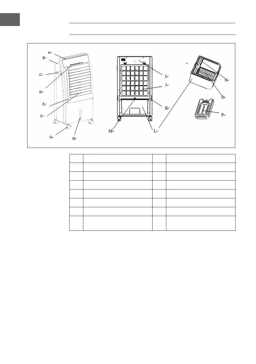D Pannello di controllo L Serbatoio dell'acqua