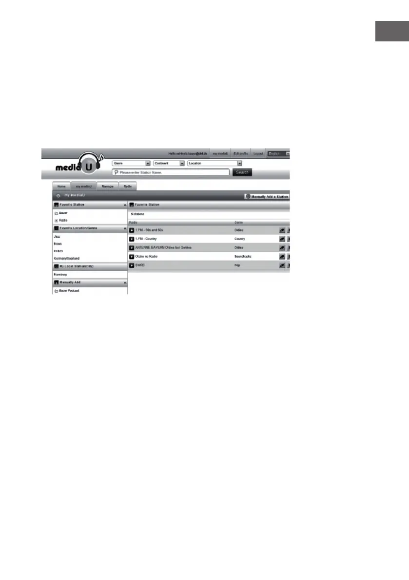 2. On the Internet radio. , go to Conguration > Manage my mediaU and