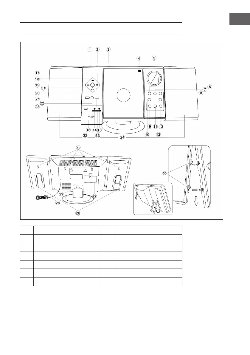 7 Sintonizador (hacia arriba) 14 Entrada auriculares