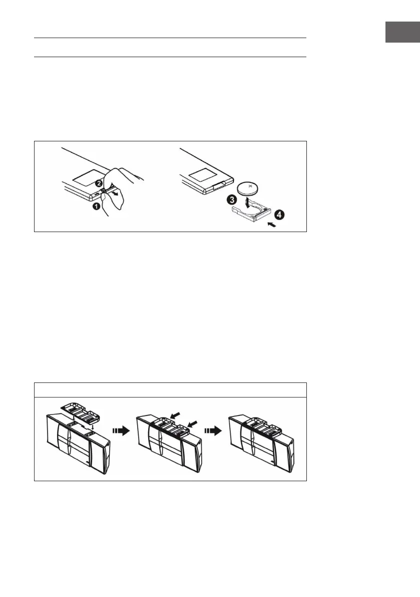 • Réinsérer le support de pile dans la télécommande (4).