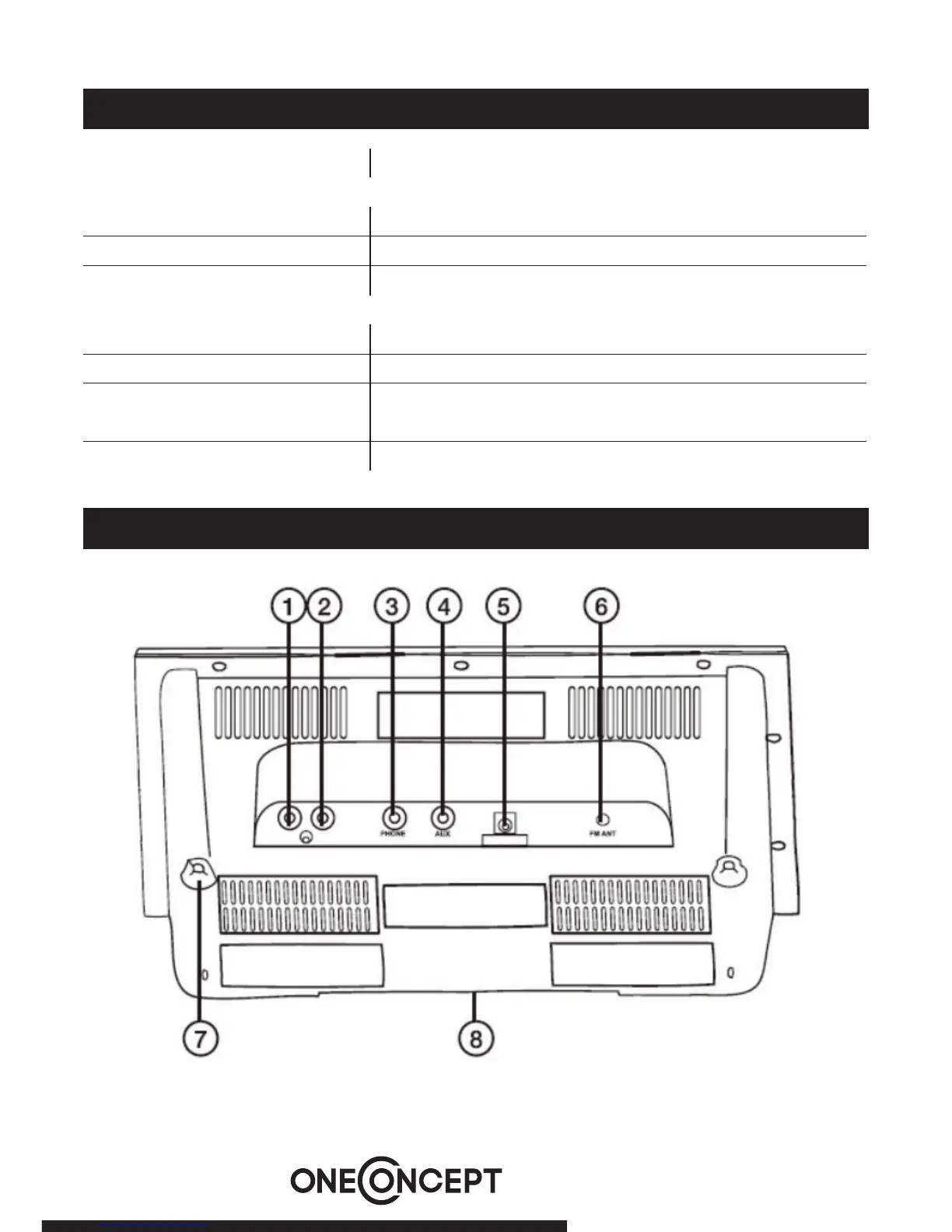 Connections USB-Port, SD-Slot, AUX-Eingang, Kopfhörer-Ausgang