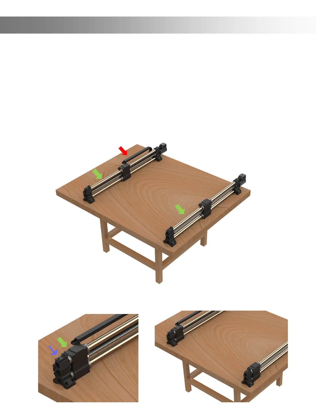 Step 1: Set Y-Rails (Green Arrows) on the bench and place them close to where you would like them to